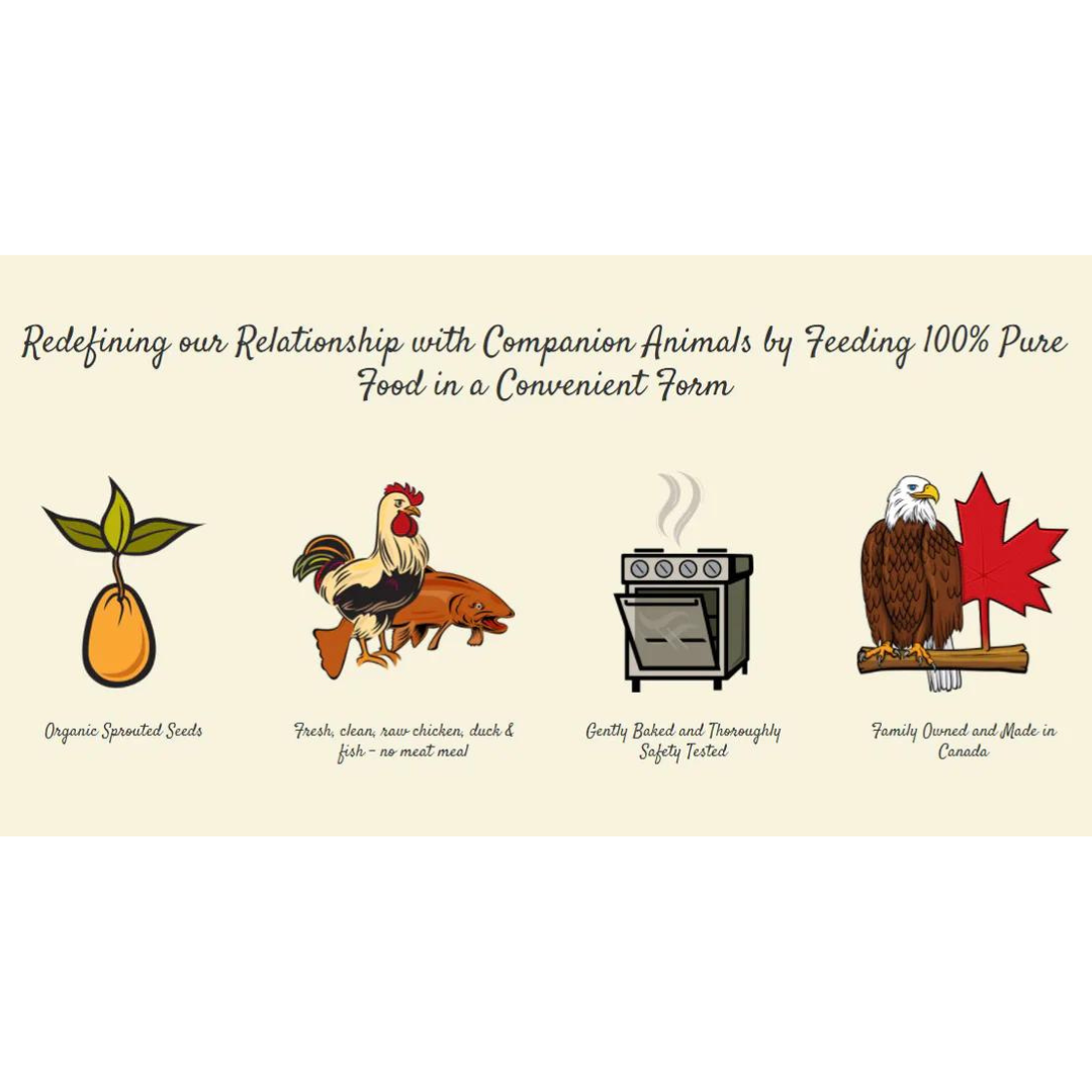 Made with clean ingredients, antibiotic-free raw meat, whole produce, and sprouted organic seeds!